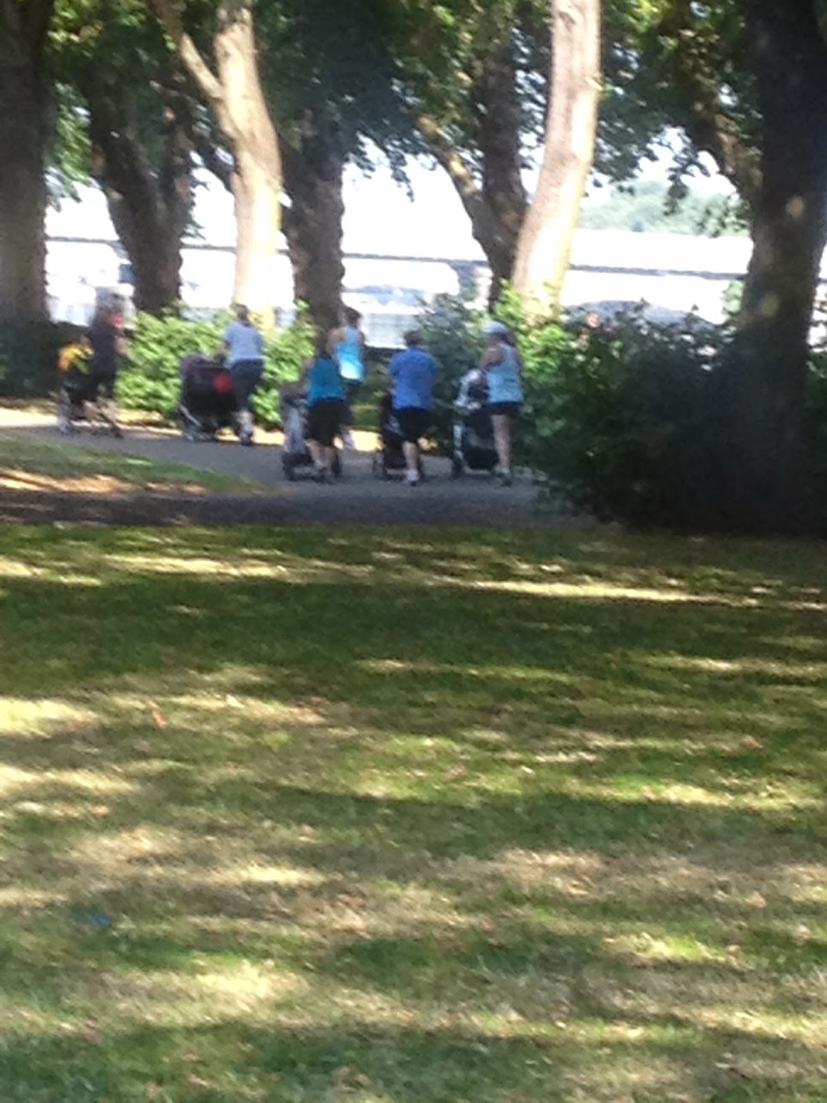 Claire and Lissy in the pram fitness group in Wandsworth Park.